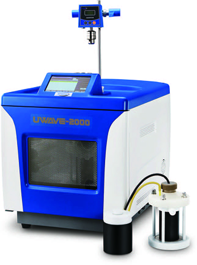 UWave-2000可配備多種規(guī)格反應(yīng)容器,50~2000mL多種規(guī)格玻璃容器可選,另有多種規(guī)格的石英材質(zhì)反應(yīng)容器可滿足紫外輻照下的光化學(xué)反應(yīng)需求。儀器可配備數(shù)字式恒速機(jī)械攪拌或磁力攪拌裝置:機(jī)械攪拌對(duì)于大體積、高粘度、高固體分等體系,有更好的適用性,攪拌桿材質(zhì)可選PEEK或石英材質(zhì);磁力攪拌轉(zhuǎn)速范圍在0~800r/min,轉(zhuǎn)速可調(diào),實(shí)時(shí)顯示;配備冷凝回流、滴液、分水等裝置,并配惰性保護(hù)氣體接口。