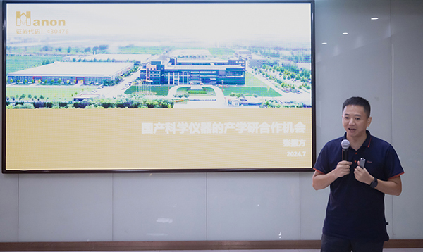 在會上,海能技術總經理張振方同與會專家老師分享國產科學儀器的產學研合作機會,帶領與會專家參觀走訪海能產業(yè)園,介紹行業(yè)、海能概況。