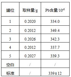 使用硝酸、鹽酸和氫氟酸對土壤標(biāo)準(zhǔn)物質(zhì)樣品進行消解實驗,取樣量0.2g,最高實驗溫度200℃,保溫40min,石墨爐原子吸收光譜儀測試土壤標(biāo)準(zhǔn)物質(zhì)樣品中鉛元素的含量在標(biāo)準(zhǔn)值的范圍內(nèi),測試結(jié)果符合要求。