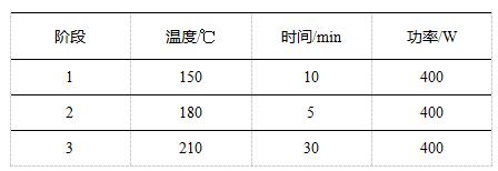 稱取剪碎的薄膜樣品約0.1g(精確至0.1mg),加入8mL硝酸,靜置5min左右,待無明顯反應(yīng)后,組裝消解罐,按照如下設(shè)置參數(shù)進(jìn)行實(shí)驗(yàn):