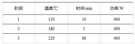 精確稱取鈰鋯樣品約0.05g(精確至0.1mg),加入6mL硫酸,緩慢加入6mL鹽酸,靜置10min左右再補加6mL氟硼酸,組裝消解罐,按照如下設(shè)置參數(shù)進行實驗: