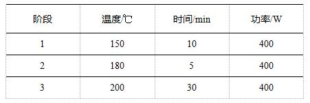 稱取二氧化鈦樣品約0.1g(精確至0.1mg),加入2mL硝酸、6mL鹽酸和3mL氫氟酸,靜置15min左右,待無明顯反應(yīng)后,組裝消解罐,按照如下設(shè)置參數(shù)進(jìn)行實(shí)驗(yàn):