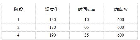 使用硝酸作為實(shí)驗(yàn)的消解試劑,稱取軟膠囊樣品0.2g(精確至0.1mg)于消解罐中,加入8mL硝酸,靜置5min左右,組裝消解罐,按照如下設(shè)置參數(shù)進(jìn)行實(shí)驗(yàn):