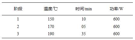 使用硝酸和過氧化氫作為實驗的消解試劑,稱取全營養(yǎng)配方樣品0.2g(精確至0.1mg)于消解罐中,加入8mL硝酸、1mL過氧化氫,組裝消解罐,按照如下設(shè)置參數(shù)進行實驗: