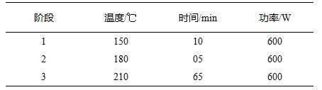 使用硝酸、濃硫酸、高氯酸和氟硼酸作為實驗的消解試劑,稱取碳化鋯樣品0.01g(精確至0.01mg)于消解罐中,加入2mL硫酸、5mL硝酸、1mL高氯酸和5mL氟硼酸,靜置5min左右,組裝消解罐,按照如下設置參數(shù)進行實驗: