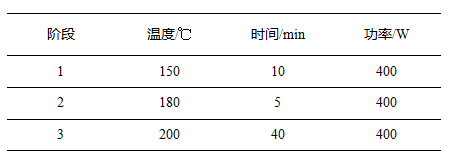 稱取草酸二聚酸樣品約0.1g(精確至0.1mg),加入10mL硝酸,靜置15min左右,待無明顯反應(yīng)后,組裝消解罐,按照如下設(shè)置參數(shù)進(jìn)行實(shí)驗(yàn):