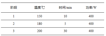 稱取釹鐵硼磁體樣品約0.1g(精確至0.1mg),加入6mL硝酸和2mL鹽酸,靜置15min左右,待無明顯反應后,組裝消解罐,按照如下設置參數(shù)進行實驗: