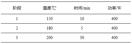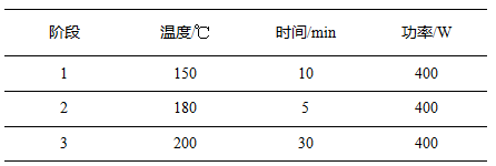重新稱取鋱樣品約0.2g(精確至0.1mg),加入2mL硝酸和6mL鹽酸,靜置30min左右,待無明顯反應后,組裝消解罐,按照如下設置參數(shù)進行實驗: