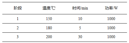 稱取石墨粉樣品約1g(精確至0.1mg)置于消解罐底部,加入12mL硝酸,靜置15min左右,待無明顯反應(yīng)后,組裝消解罐,按照如下設(shè)置參數(shù)進(jìn)行實(shí)驗(yàn):